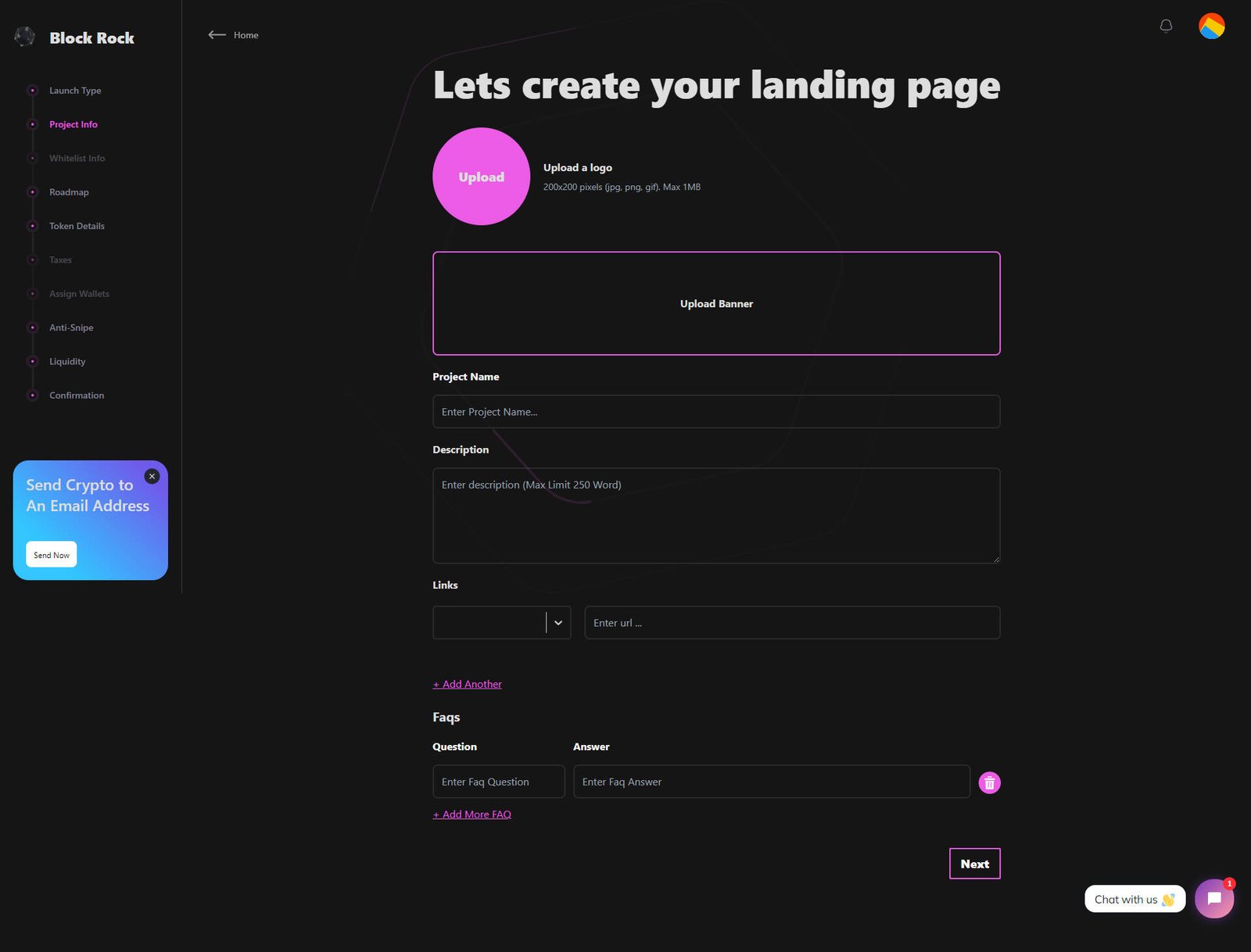 Block Rock is a web application that enables users to launch token contracts instantly, offering a simplified and efficient solution for creating smart contracts. Maktoum managed the entire development process, from backend and frontend to smart contract creation, ensuring the platform is both scalable and high-performing.