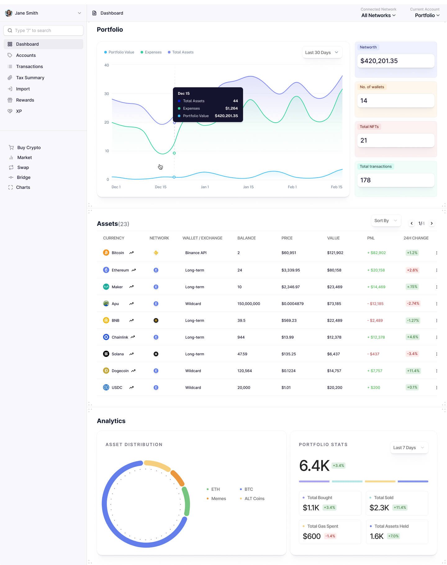 Keeper is an all-in-one cryptocurrency portfolio management tool that enables users to track their crypto assets across multiple blockchains. Users can add wallets, connect exchanges via APIs, or upload CSV transaction files, which are processed by the system to generate a detailed portfolio. Keeper also provides PNL and tax reporting for U.S. and Canadian users, allowing easy export of reports for services like Taxbit. Maktoum developed the frontend and backend, working with top providers like Zerion, Vezgo, and Crypto API to deliver a seamless user experience.